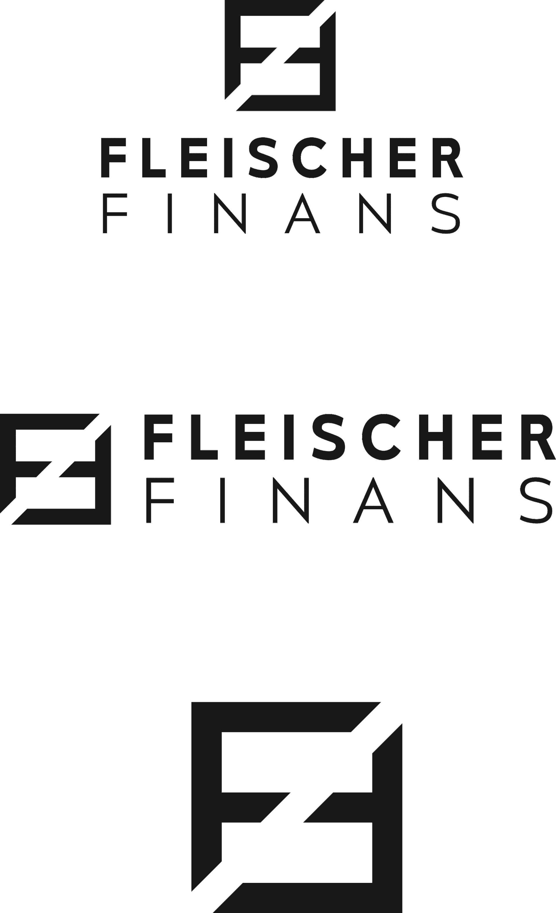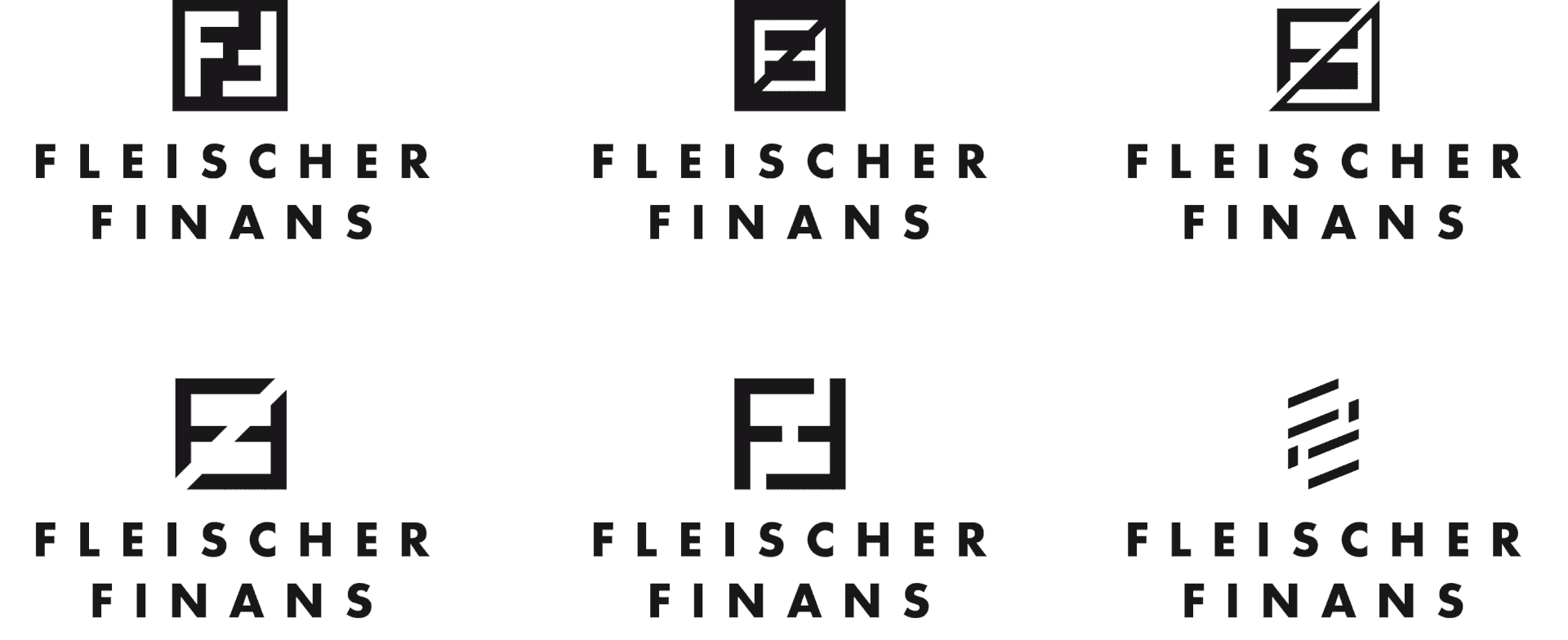 Noen av skissene for den endelige logoen til Fleischer Finans