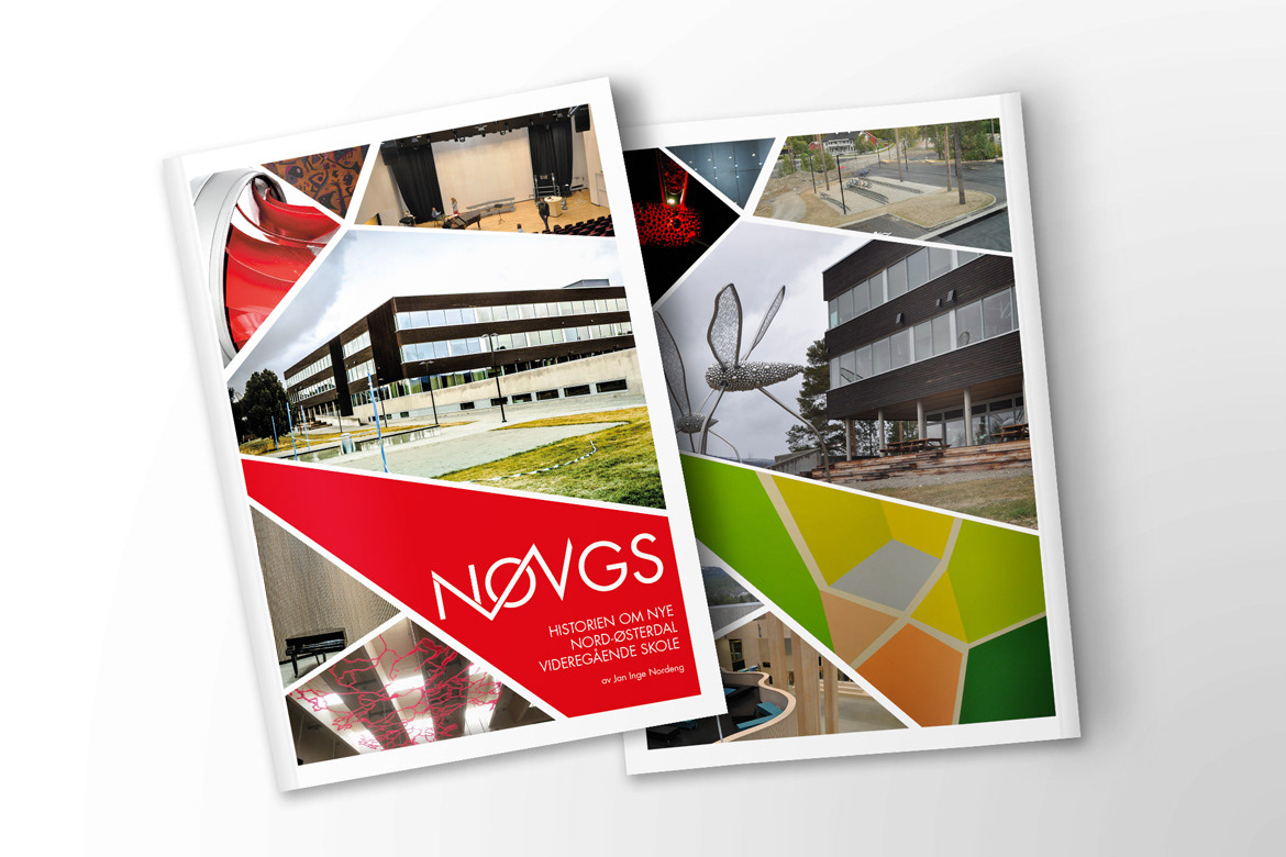 Layout av boken NØVGS - Historien om nye Nord Østerdal Videregående Skole av Jan Inge Nordeng.