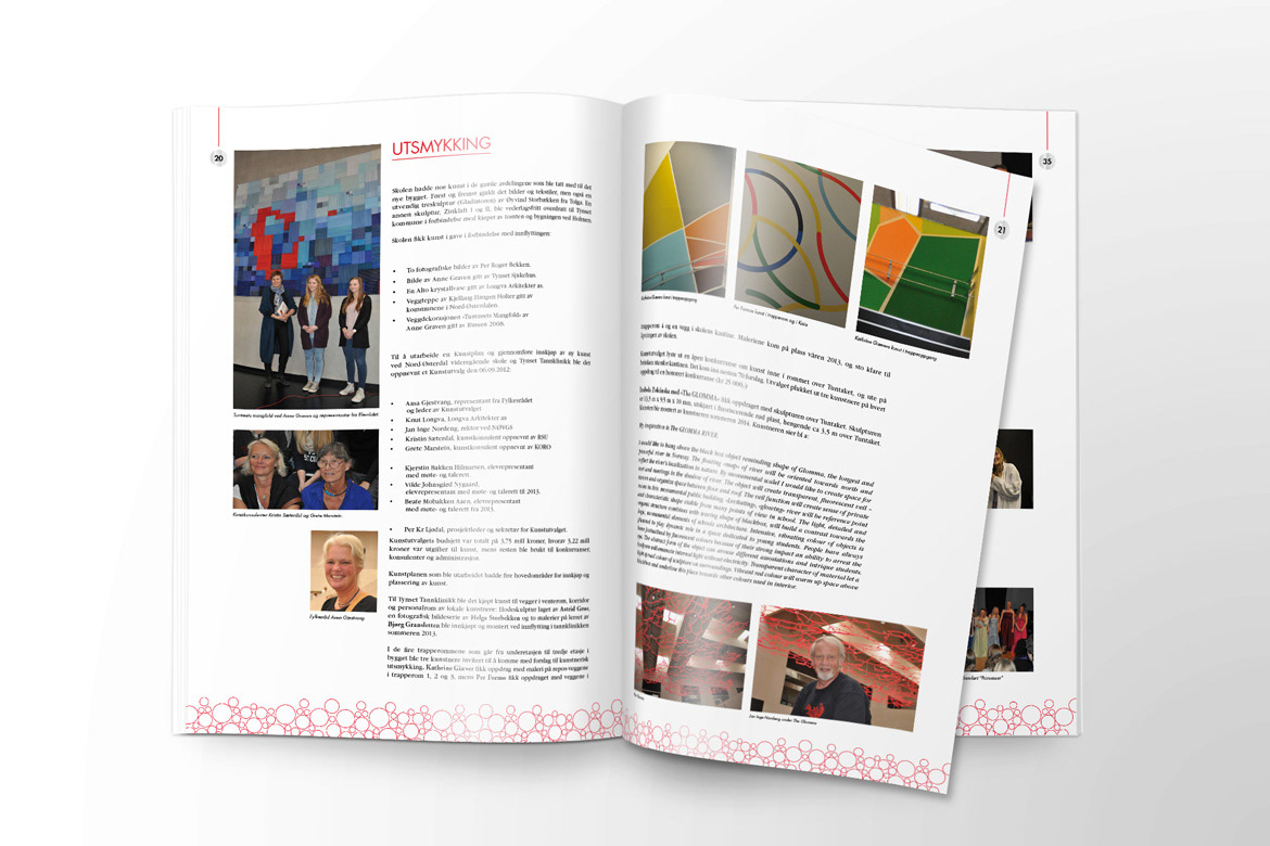 Layout og designelementer er laget med utgangspunkt i detaljer fra skolens utsmykning.